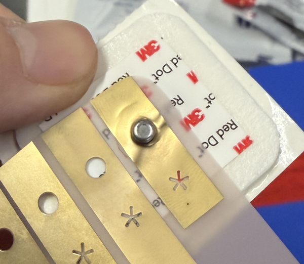 The keyhole intermediate channel was 2mm, and held much more consistently across uses. I think this is because it relied on the flexibility of the underlying substrate, or on the flexing as opposed to the deformation of the thin metal layer. In the future we'll go with the too-thin channel, and I think the electrode clips and EKG circuit will be able to all fit on the same circuit.