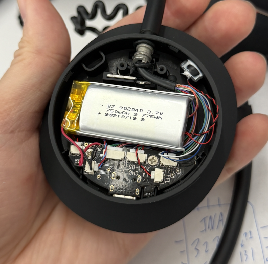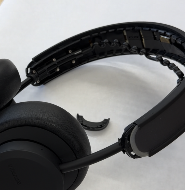 The part of the band coupling to the earmuffs (for the wire pass-through) is made of steel, which I found a bit surprising — its the only mechanical component that's made of metal in the whole device. Actually I felt a bit bad seeing how good the build quality was during the teardown. It was taken apart in a way that could be put back together, but I'm not really interested.